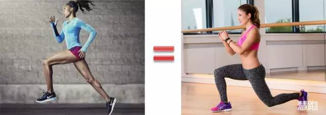 因此,模拟一侧腿前摆,一侧腿后蹬的动作才是跑步专项力量训练,什么样的力量训练动作更加模拟跑步动作呢?另一款经典下肢力量训练动作——弓箭步练习与跑步动作相似度更高。