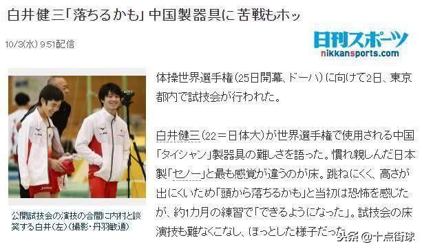 此外,就在这届多哈体操世锦赛的前20天,日本体操男队的运动员白井健三就已经多次抱怨,他先是表示中国(泰山)器材和日本器材相比,很硬,不容易起跳,尤其是自由操地面感觉很不好,不仅难跳,而且很难跳出高难度;随后又再次重申,我不想用这样的器材比赛,我对此很胆怯!