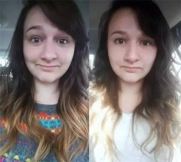 于是她拍了一张素颜照片,是这样: