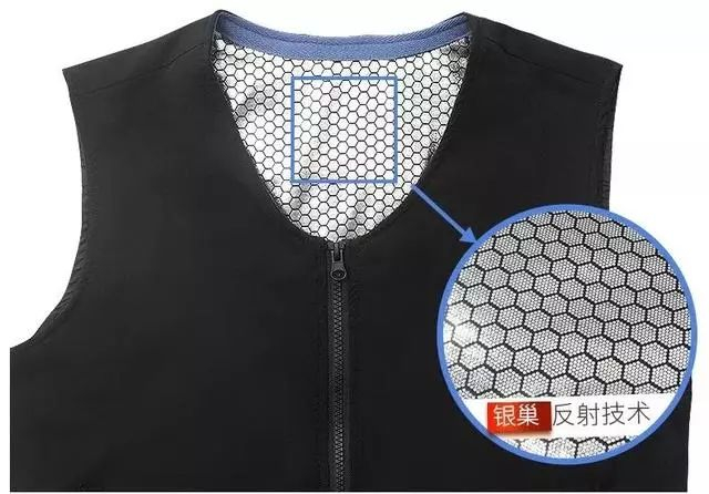 而且马甲的内层采用独创的银色六角蜂巢结构,可有效地反射人体辐射的红外线与热量,将人体散发的能量集中在材料表面,减少在寒冷条件下人体热量的流失。