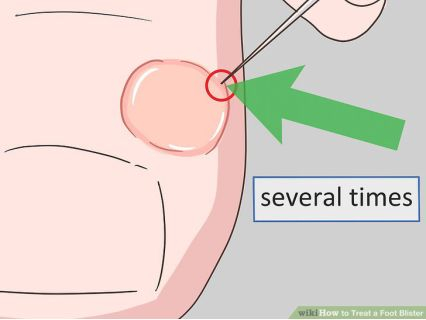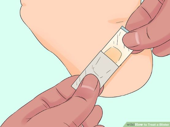 3、在刺破水泡时,注意从水泡的侧面刺破它,而不要从顶面刺破。你可以戳出一个口子,也可以戳出两三个口,让重力排干水泡里的液体或者用手轻轻挤压,注意挤压时尽量不要挤压刺破处,以防感染,当然手也要保持干净。