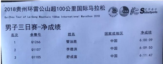 4. 环雷公山超100公里马拉松:管油胜、姚妙夺冠