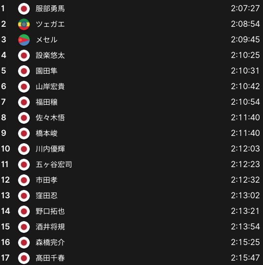 1. 黑马!服部勇马击败设乐悠太夺冠!