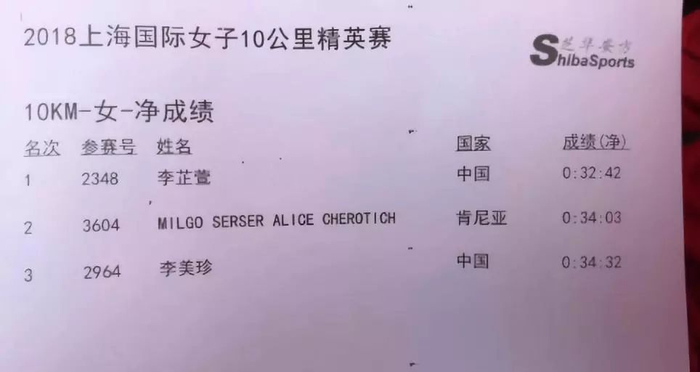2. 上海女子10公里精英赛:李芷萱32分42秒强势夺冠