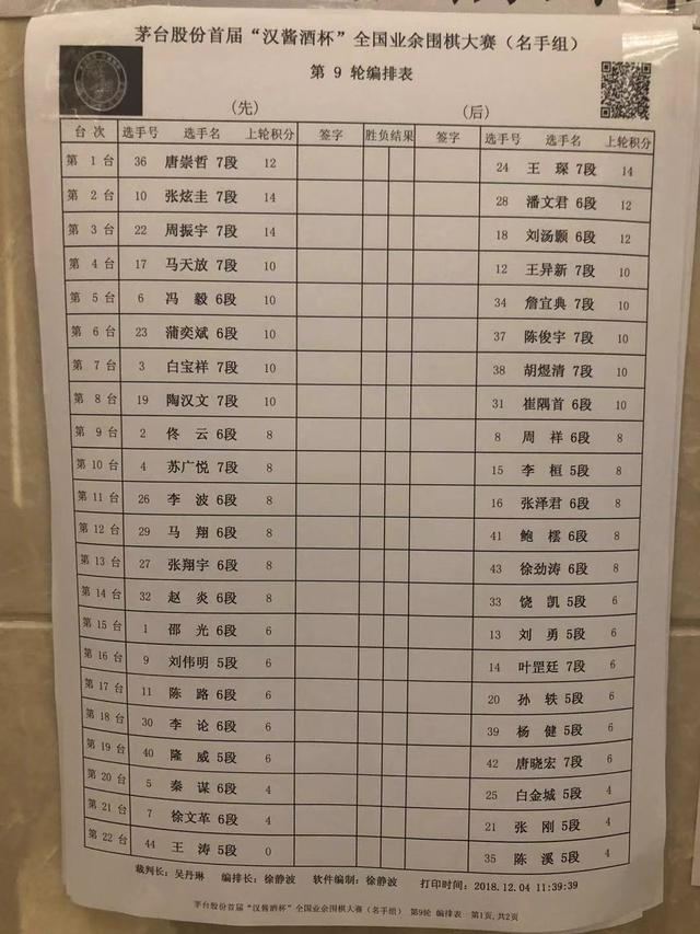 第9轮对阵已出,王琛vs唐崇哲,张炫圭vs潘文君,周振宇vs刘汤颢。
