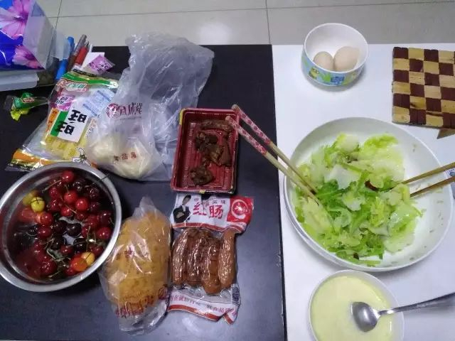 左边大餐是室友的,右边菜汤是我的(同时也是室友的)