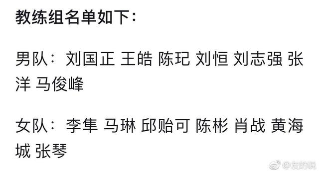网传国乒教练组名单 马琳陈杞邱贻可三大世界冠军榜上有名