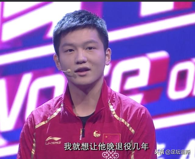 谈到队内的激烈竞争,樊振东表示:“你尊重他的方式就是打败他。”当主持人问想对马龙说什么时,樊振东动情地向师哥喊话道:”我就想让他晚退役几年,再等等我。”