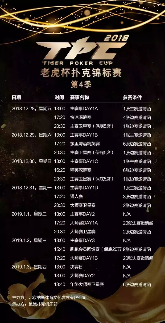 作为国内的顶级扑克赛事之一,老虎杯赛事的奖励非常丰厚,第四季保底400万旅游基金+年终总决赛200万旅游基金。如此高性价比的赛事,您准备好了吗?