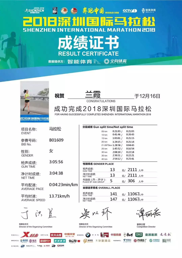 12月16日,深圳国际马拉松,3小时04分38秒,女子第13