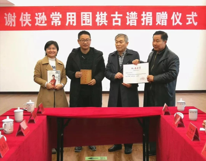 参观结束后,小世界俱乐部老教授后援团团长、棋王的关门弟子、复旦大学周本根教授和特意从澳洲赶回的棋王外孙张勤康先生向棋院捐赠了棋王研究的围棋古谱及有关抗战历史资料书籍,受到平阳县体育文化部门热烈欢迎!