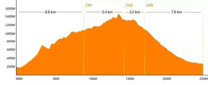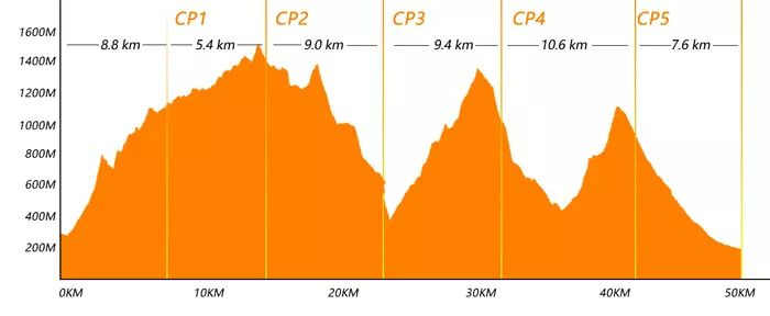 五人岭(CP6:6.8km,累计爬升+604m,累计下降-365m)关门时间:11:00