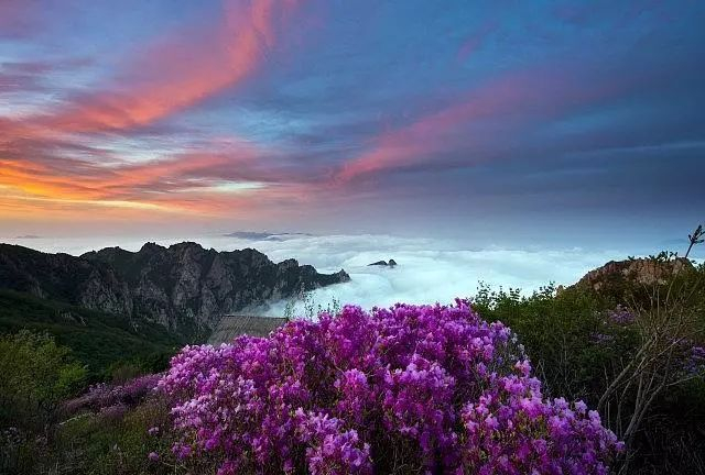 天女峰,上有明朝建造的天台,登临峰顶可观云海、看日出、瞻佛光,西望长城,北俯群山,360度一度一景,度移景变。响山,在天女峰左侧,其山势浑圆,形如大钟,每逢阴雨和风云天气就会发出抑扬顿挫的山石交响乐,也因此而得名。
