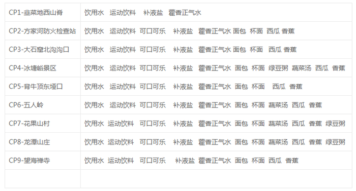 2、为培养自带补给参加训练和比赛的习惯,专业越野赛在比赛中途提供食物饮料补给点之间距离较远,希望所有参赛选手赛前自备补给,整个比赛过程不允许丢弃任何废弃物