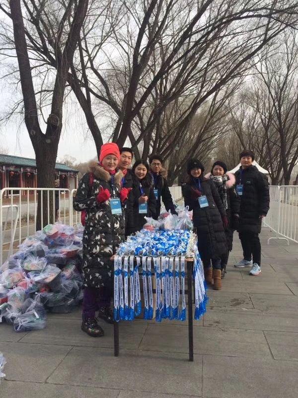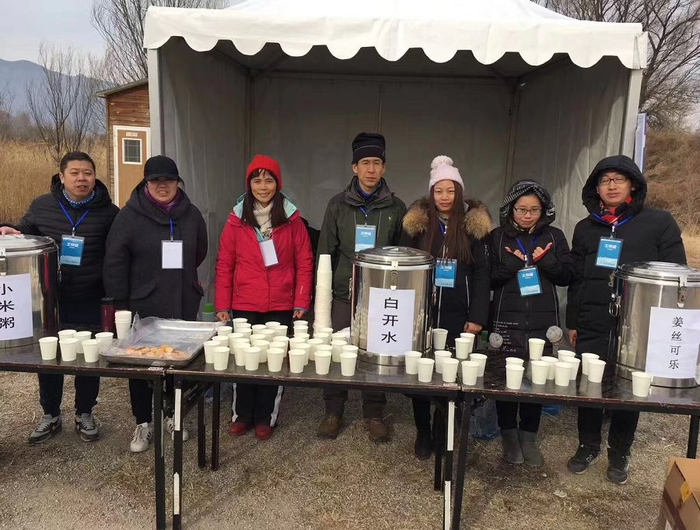 张晶坐地铁到达集合点时,已经有其他志愿者早到了。满载着志愿者的第一辆大巴7点就出发了,一路幸运没有堵车,走得还比较顺畅,不到九点大家就到达了比赛地野鸭湖公园。下车的瞬间,张晶就感到了深深的寒意。充满挑战的一天开始了。