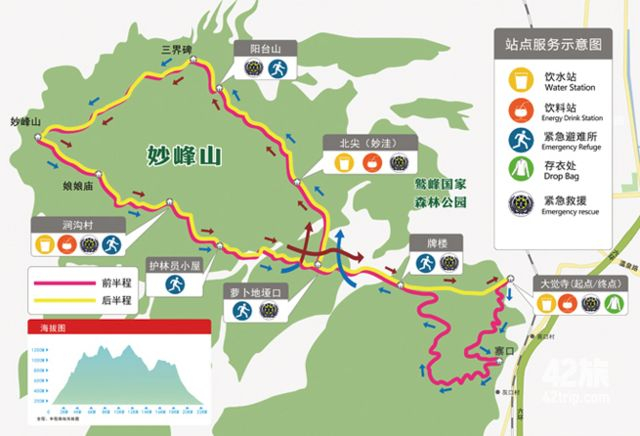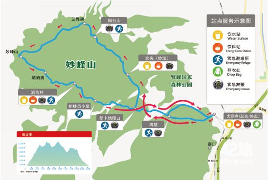 23公里线路 (强度2.0+累计上升1700米)路线:大觉寺—妙峰古道牌楼—萝卜地垭口—北尖庙洼(sp1)—阳台山(cp1)—三界碑—妙峰山(cp2)—娘娘庙(古道)—涧沟村(sp2/cp3)—萝卜地垭口—妙峰古道牌楼—大觉寺