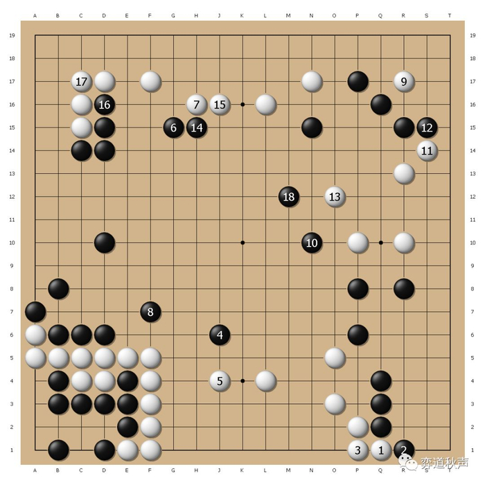 白棋难局,但黑1、3恶手,白4、6机敏,擒下黑棋右边六子,一举胜势。
