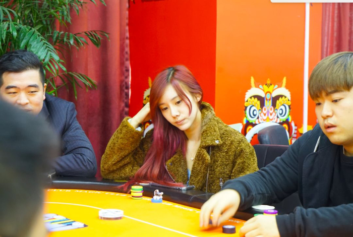 Liya在这把牌过后,不断地在牌桌上累积计分牌,最后成为牌桌上的CL;可过了一会却在级别11( 600/1200/200)中的一把牌损失大量计分牌;