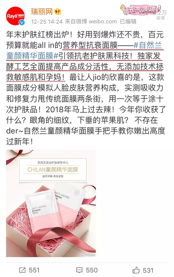 这款少女心爆棚,效果杠杠的面膜不用我多夸,它还是瑞丽网浓情推荐的「年度人气面膜王」。