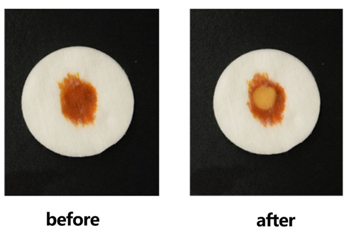可以看到使用产品后,碘酒被还原,具有明显抗氧化的功效,对于害怕年龄的我们来说简直就是福音!