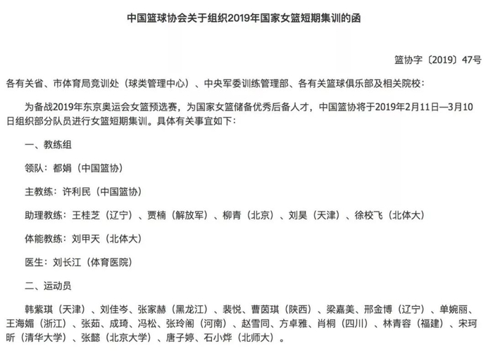 在WCBA全明星周末结束后一天,中国篮协公布国家女篮新一期短期集训的名单,其中就包含了宋珂昕(清华大学)、张懿(北京大学)、唐子婷、石小烨(北师大)4名来自CUBA的球员,而石小烨在星锐赛中的表现十分突出,拿到了全队第二高的20分。官方邀请也说明,校园体育正在成为国家队选材的重要渠道。
