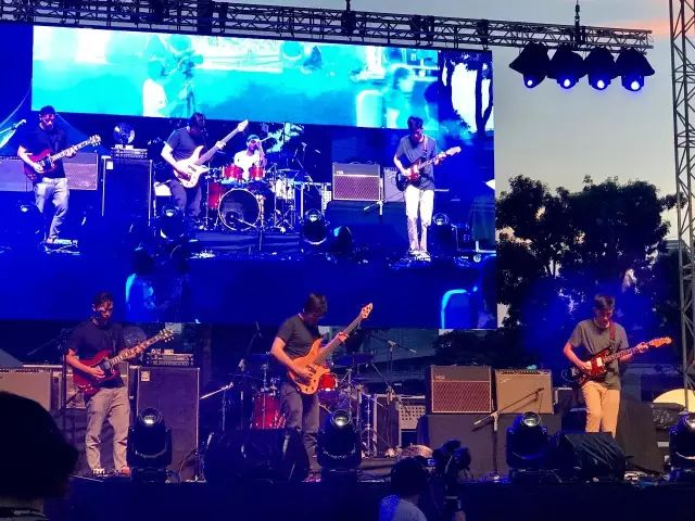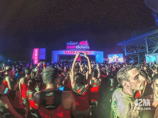 赛前,节奏感强劲的音乐、炫彩的灯光、高耸的摩天轮、起点附近的喷火表演使Sundown Marathon营造成一个月夜下的欢乐大party,没有丝毫比赛的紧张感。DJ点燃全场热情,赛事会安排热舞和演出带领跑友热身。