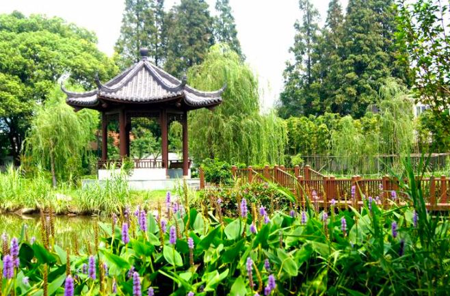 目光穿过绿植碧波,倒映在水面上的亭台楼阁讲述着岁月的变迁。而顺着台阶走上公园的堤岸,一望无际的东海就在眼前。婉约的公园依偎在浩瀚的海边,一个又一个日夜慢慢过去。
