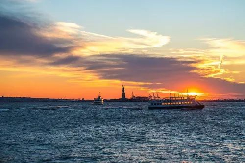 最佳时间:清晨或傍晚,在自由女神像后面捕捉日落