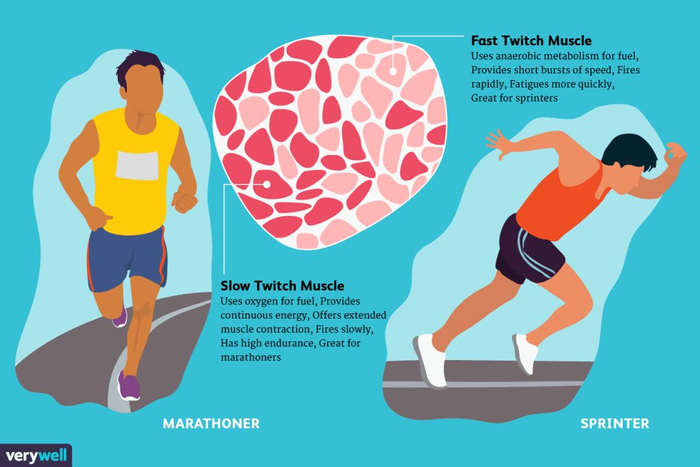 快肌和慢肌是两种不同的肌纤维类型,快肌又称为白肌或II型肌,慢肌又称为红肌或I型肌。慢肌纤维在力量与爆发力方面逊色与快肌纤维,但其拥有很好的耐力。从生理学特征来看,慢肌纤维收缩速度慢、收缩力量小,但持续时间长、不易疲劳。