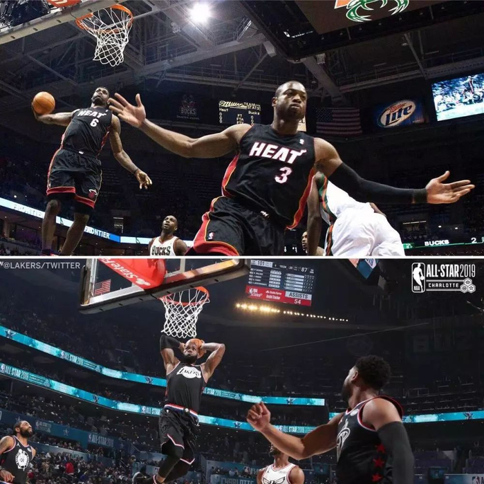 值得一提的是,得益于新的分队制度,詹姆斯选择将韦德招致麾下,昔日拍档才如愿完成最后一次场上合作。我们熟悉的“詹韦连线”重现江湖,但也成为经典绝唱。