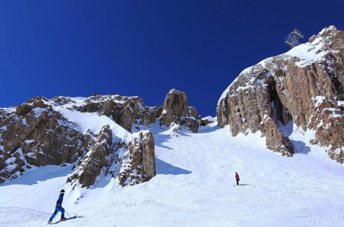 首先,它的平均坡角为45度(换算成坡度就是100%),比有着阿尔卑斯最难雪道之称的“瑞士之墙”(平均坡度76%的Mogul道)还要夸张。光是从照片上就能觉得胆战心惊,但只有亲身体会过才能理解从这里滑下需要多大的勇气;