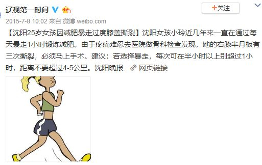 节食、抽脂、吃减肥药都不健康,那我运动减肥总可以吧?然而没有运动基础的人,以上来就过度运动,往往会带来运动损伤:轻则肌肉拉伤,膝盖疼痛,重则半月板撕裂……