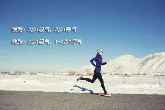 冬季户外的空气寒冷而干燥,在跑步过程中切记不要大口呼吸,以免冷风对呼吸道的过度刺激,造成咽喉不适,甚至引发扁桃体炎等。慢跑时,鼻子呼吸的氧量足以供应人体所需氧量;快速跑动或长跑时,可以采取口鼻配合的呼吸方式,口微张,舌尖抵着上颚,使进入口中的冷空气得以加热加湿,减少对呼吸道的刺激。此外,还应采取正确的呼吸频率,如慢跑时采用3步1吸气,3步1呼气;快跑时采用2步1吸气,1-2步1呼气。科学的呼吸方式可以保证跑动过程中的舒适感。