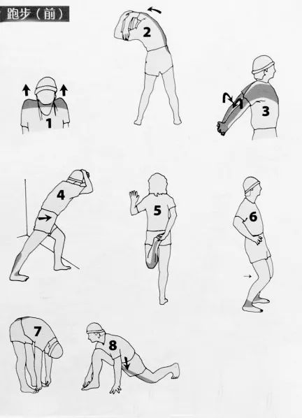 (3)专项热身活动:加大活动力度,进行与所跑步相适应的运动练习。