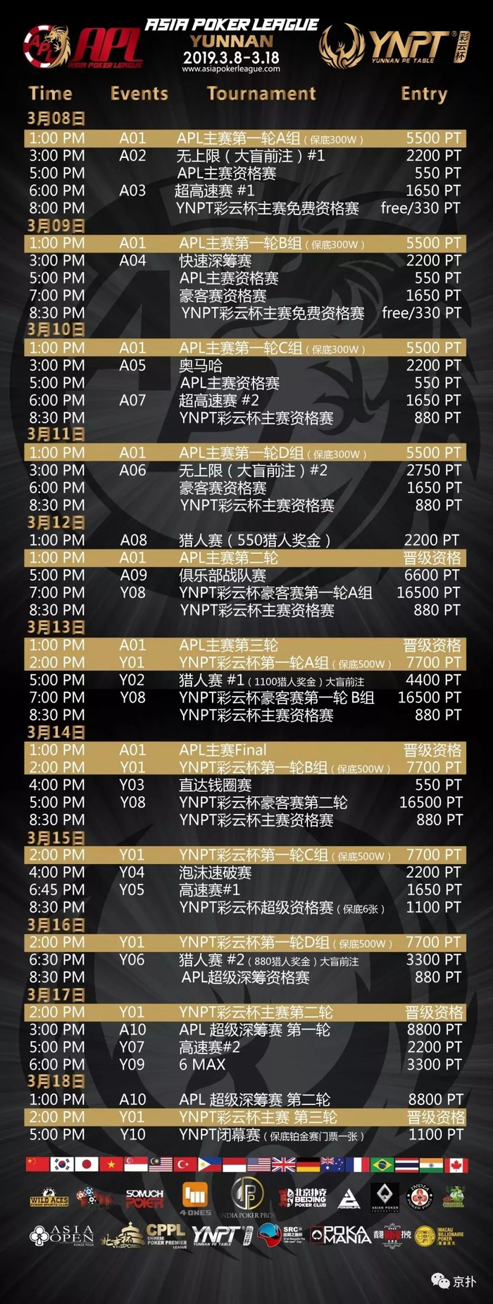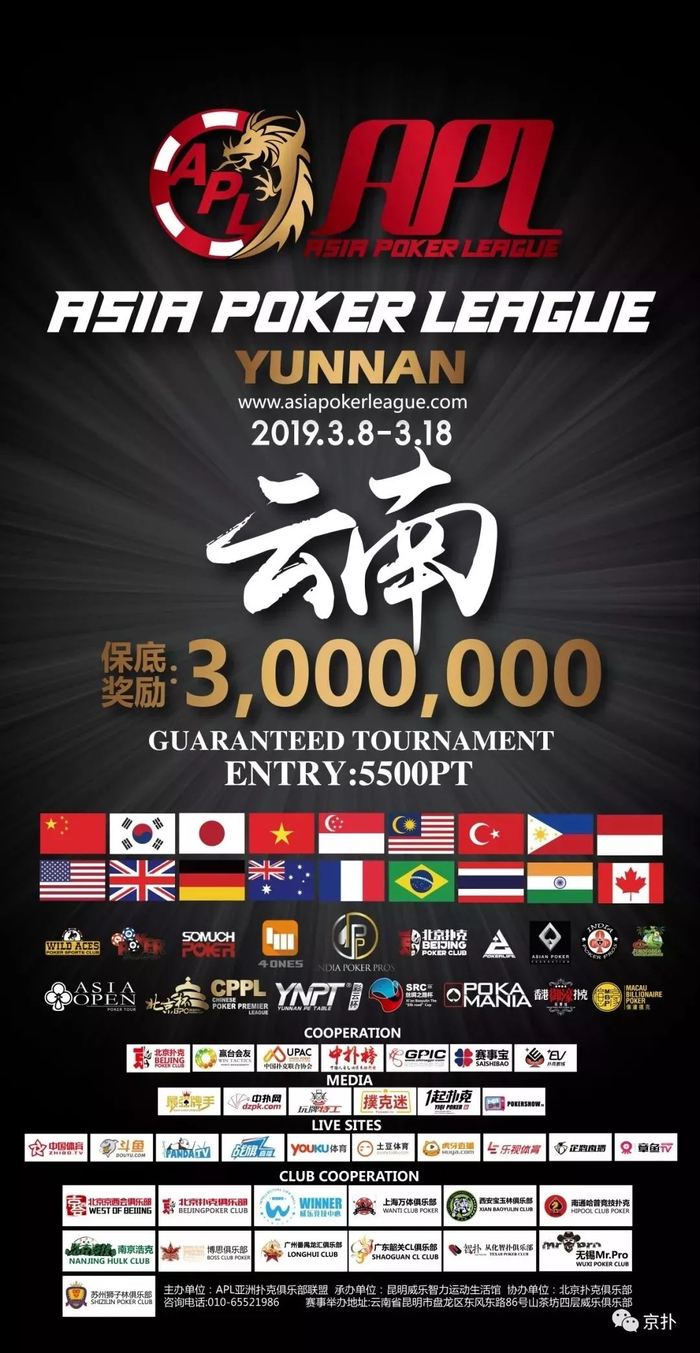 而新年伊始,又该开始新的征程了。3月,草长莺飞,万物复苏,浑身是劲儿,有一场大比赛,正是你大展身手的舞台。3月8日至3月18日,在我国云南昆明将举办2019年亚洲竞技扑克大赛,同时上演亚洲扑克联盟杯•APL和YNPT•彩云杯两大顶级赛事,保底总奖励高达800万。
