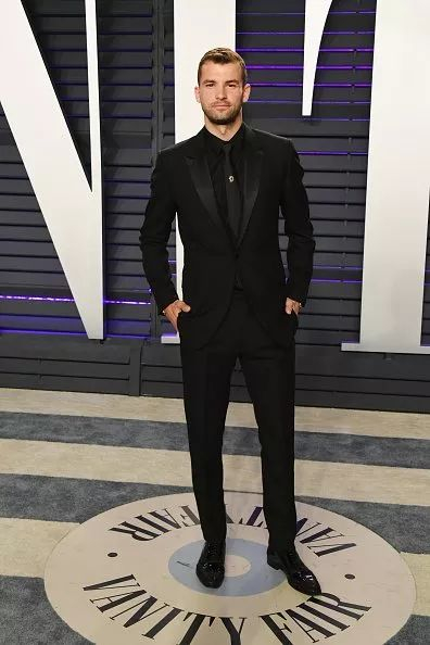 除了这两位,她们的共同好友迪米特洛夫也来了。一席黑色礼服搭配黑色领带,低调的像一只被驯服的野猫。