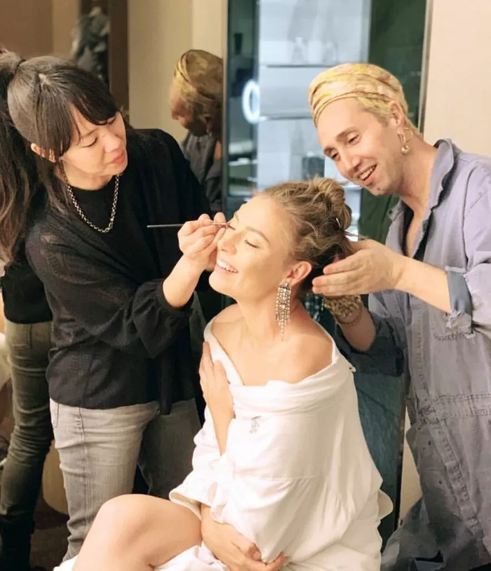如此重大的场合,莎娃的gay蜜&发型师亲自护航。