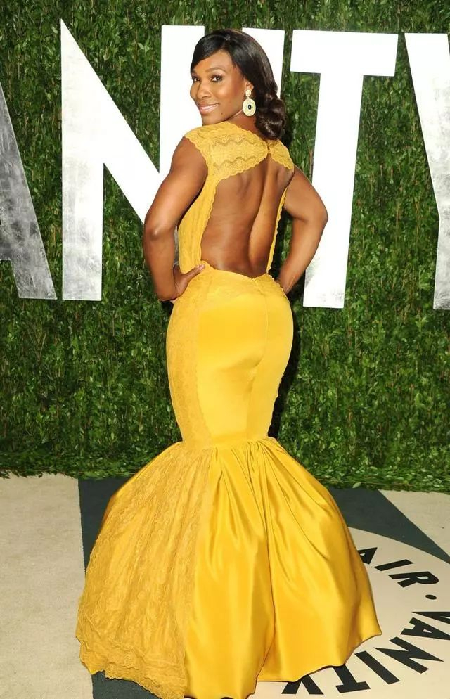 吸取经验后,2009年小威第二次亮相名利场。一条滑面褶皱深v礼服出场,好像把邓紫棋的皮裤套到了身上,有点惊悚。