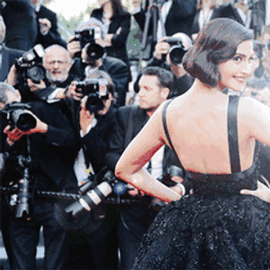 2017年身着David Koma的深蓝色的吊带装。细肩带抹,胸前凸后翘,简直是性感的同义词。