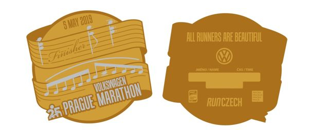 本届布拉格马拉松奖牌也非常特别,主体部分是摩尔多的音乐符号,来看看奖牌的谍照。
