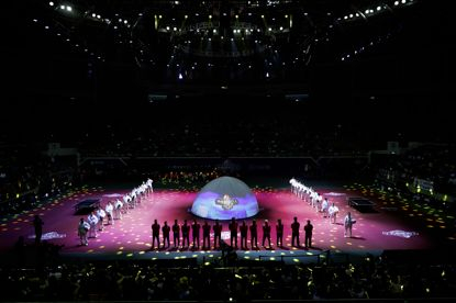 回归后的地表最强12人赛延续了此前注重科技感的特点。这首先体现在开幕式中。开幕式伊始,整个体育馆如同黑色苍穹笼罩,侵者从远方袭来,人类生存环境遭到破坏,仿佛末日到来。但在手举地表最强12人旗帜的宇航员带领下,24名国乒队员扮演的宇航员依次登陆,开启了拯救人类的任务。