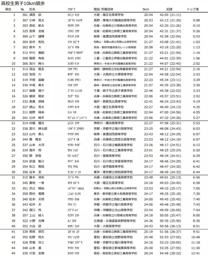 第二和第三个撞线的选手,是日本大学生川野将虎、池田向希(俩人均来自于静冈的东洋大学),他们俩的成绩分别是1:17:24、1:17:25,均超越了原日本大学生纪录1:17:41(山西利和创于2018年)。