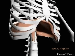 而在呼气时,肚子会往里收,也就是我们常说的挺胸收腹,收腹时腹腔容积变小,腹压同样会增加,这会进一步把横膈往上顶,这样就有利于进一步缩小胸腔,尽可能多的帮助呼气,上一口气呼出更多,下一口气才能自然吸得更多。