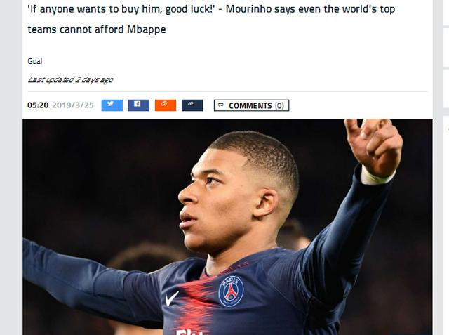 穆里尼奥近日谈到姆巴佩,说出一番耐人寻味的话:我不会说姆巴佩是最好的前锋,但他是最贵的!如果我是某家俱乐部的主教练,我是不会买的,因为肯定买不起。