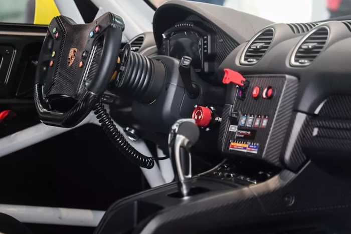 驱动 718 Cayman GT4Clubsport 的是一台 3.8 升六缸水平对置发动机,可提供 313 kW (425 PS) ,与前任车型相比有了 40 PS 的增长。配备六 速双离合变速器,并带有后桥机械差速锁;轻质麦弗逊滑柱前悬挂源自其兄长 911 GT3 Cup 。同时四个车轮都配备直径 380 mm 钢制制动盘。718 Cayman GT4 Clubsport 出厂时即带有焊接防滚架 、赛车桶型座椅以及六点式安全带,仅重1,320 kg。