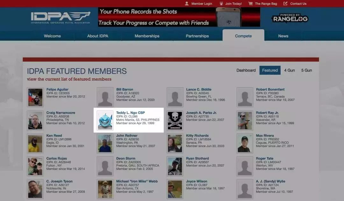 *Teddy Ngo在IDPA官方网站的Featutred members名单中,由于身份保密,并无照片,头像为大鲨鱼