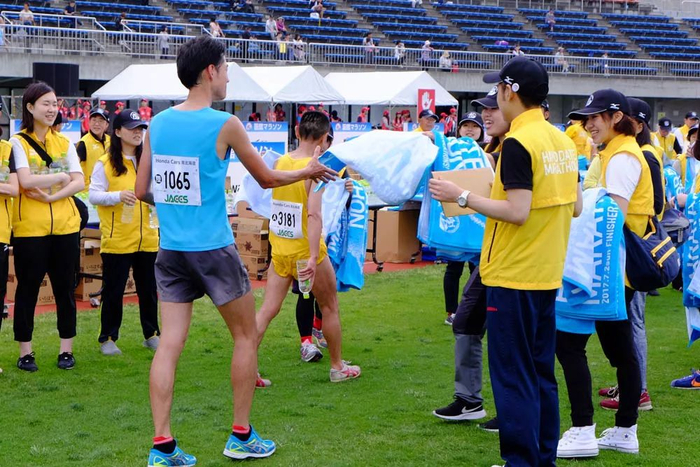 赛事终点是Chiyodai公园竞技体育场,志愿者将热烈欢迎选手们的归来,终点也会有美食等待你哦。