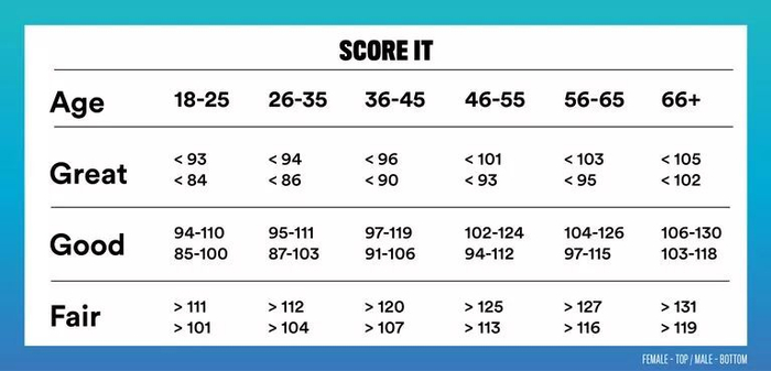 女性:18-25岁心率小于93为优秀;心率在94-110之间为良好;心率在111以上为一般。