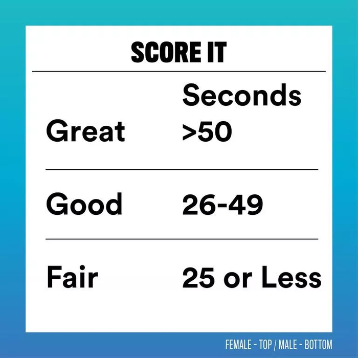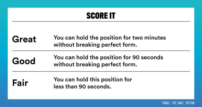 优秀:坚持50秒动作不变形;