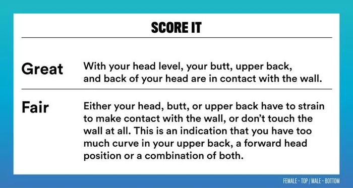 一般:你的头,臀部,上背部很难同时与墙面接触。